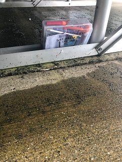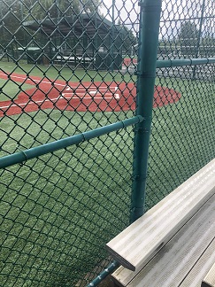 Geocache #2 is under the third base bleachers, tucked a little so as to be less obvious to passerby. Look under the left/3rd base/west end of the bleachers.