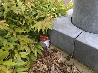 Geocache #3 is at the base of the floodlight pole. Ruffle through the ground-cover plants a little if it is not immediately obvious.