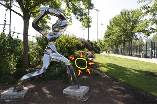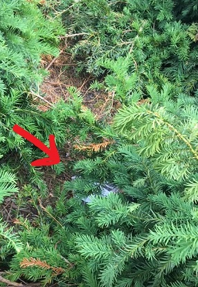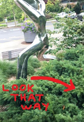 Geocache #4 is in the ground cover a little bit behind the softball pitcher sculpture. It should be obvious to someone in the shrubbery or on the wood chips, but a little hard to spot if you are on the grass. Please put it back so that this is still true!