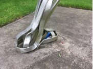 Geocache #5 SHOULD be in the foot of the soccer player statue. Previously, it has been pulled out and tossed into the bushes, so if it is not in the statue, look around nearby. It is a small mint container wrapped in blue tape for visibility.
